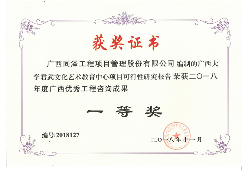 廣西大學(xué)君武文化藝術(shù)教育中心項目可行性研究報告榮獲2018年度廣西優(yōu)秀工程咨詢成果一等獎