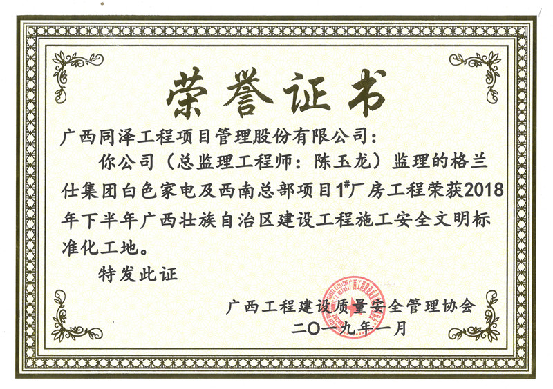 格蘭仕集團白色家電及西南總部項目榮獲2018年度安全文明標準化工地