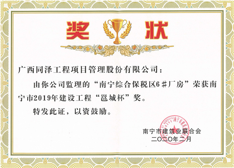南寧綜合保稅區6#廠房項目榮獲2019年建設工程“邕城杯”獎