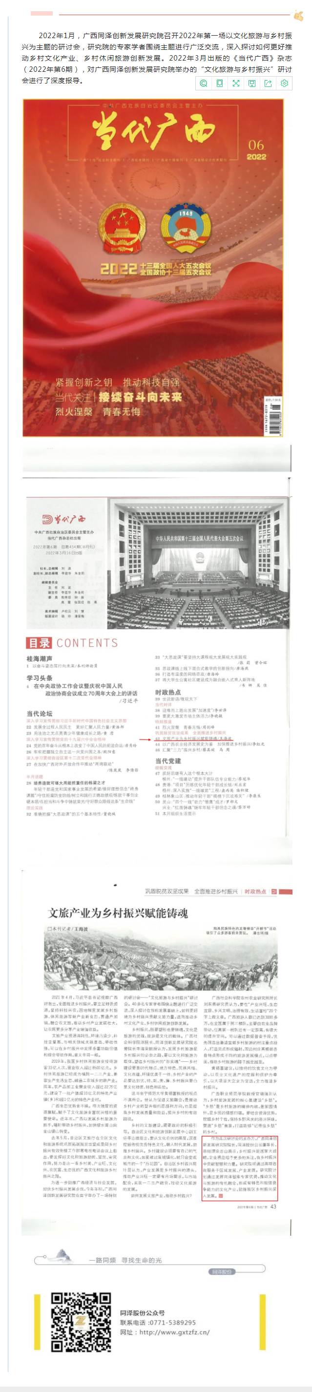 同澤研究院“文化旅游與鄉村振興”研討會獲《當代廣西》雜志報導
