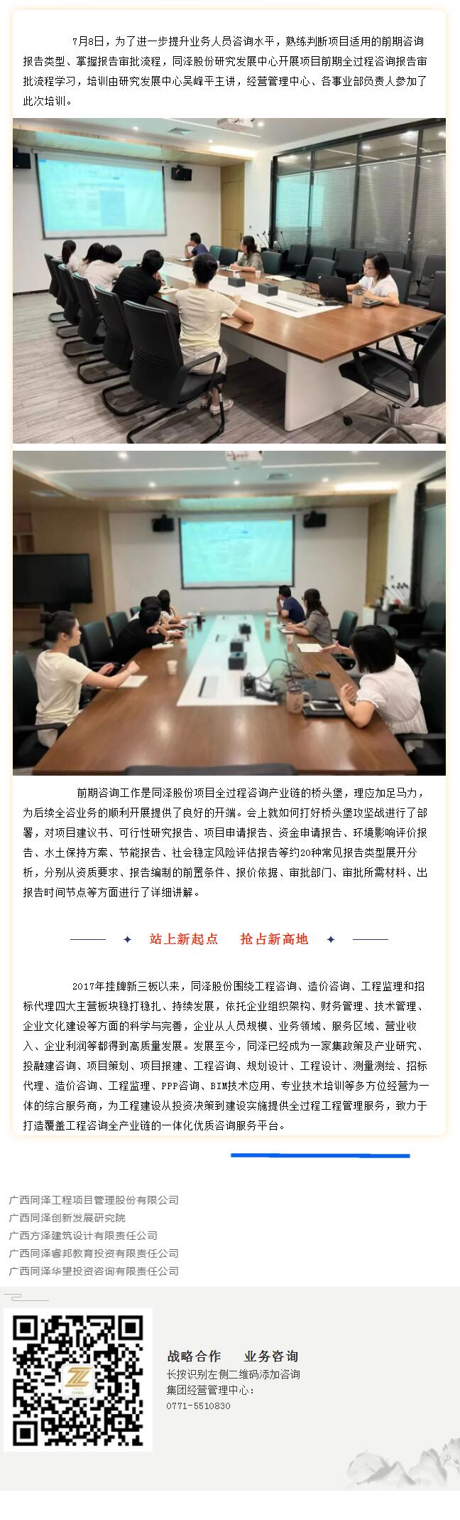 同澤研究發展中心培訓課程系列——項目前期全過程咨詢報告審批流程