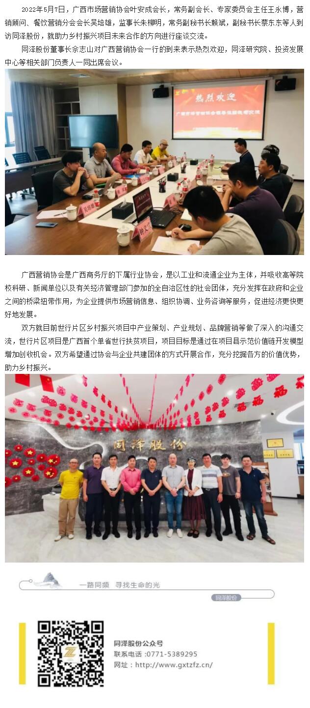 助力鄉村振興,共謀行業發展- 廣西市場營銷協會到訪同澤股份